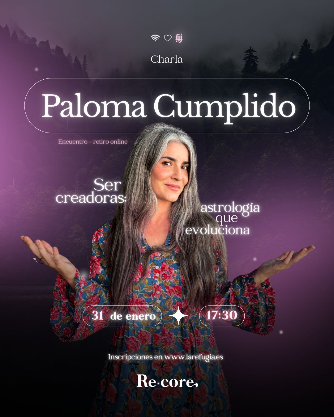 “Elegimos nacer ahora y ahora es que todo cambia. Siempre en honra profunda a la tierra, tomando raíces en ella, alzamos la mirada al cielo y presentamos el corazón. Esta es la nueva historia que elegimos. Elegir es un acto de libertad, de soberanía y responsabilidad. Este tiempo no pide nada menos. En esta charla desde una perspectiva astrológica chamánica contaré la historia que el cielo narra como la gran invitación que es: Ser creadores y creadoras de destino. Estaré compartiendo claves para identificar en tu propia astrología el gran espacio de apertura que despliega 2026 y hacia adelante. Y buscaremos sintonizar nuestro latido con el del cielo y de la tierra para volver a la armonía” (x Paloma Cumplido).
