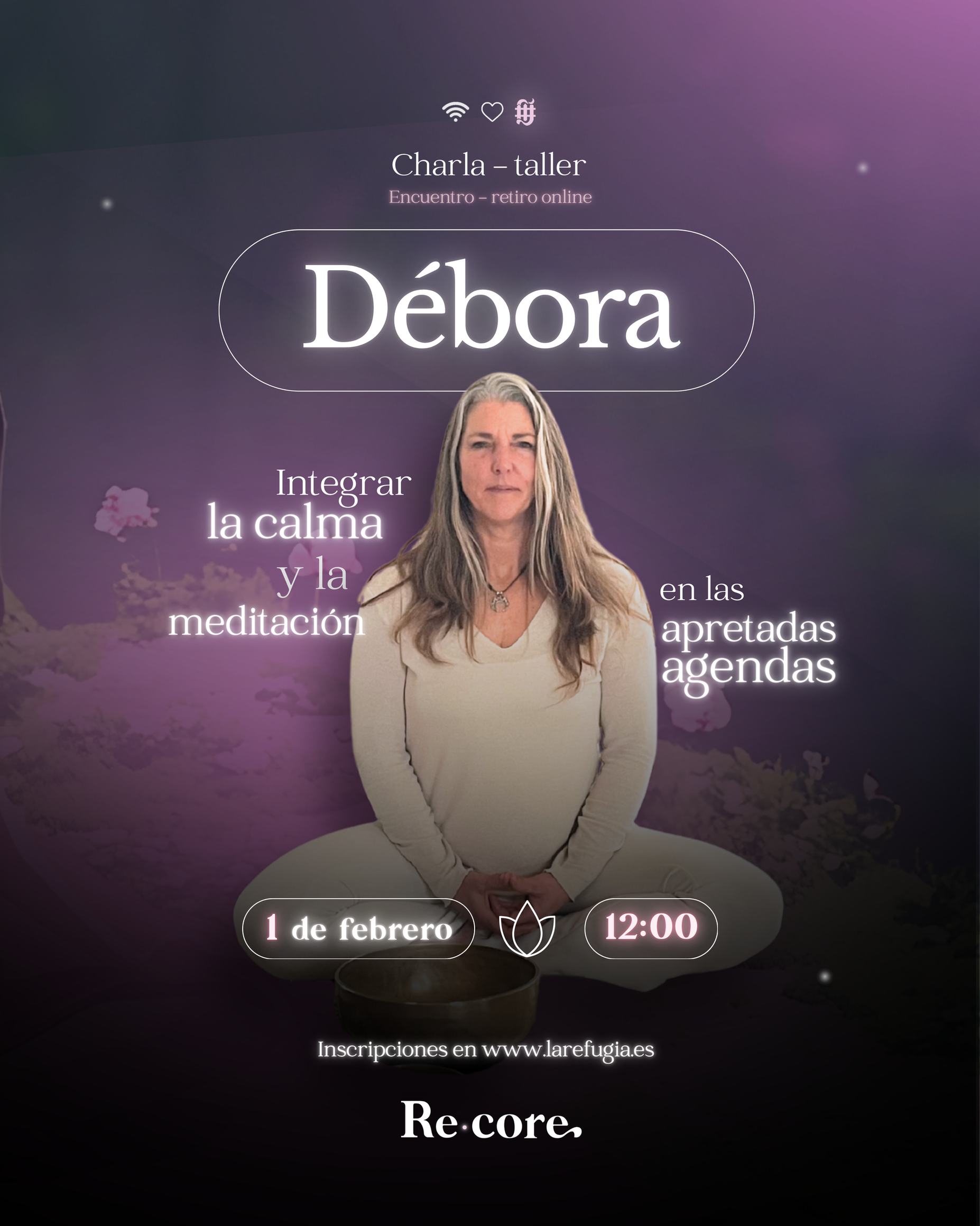 En esta sesión, Débora explorará, analizará y compartirá herramientas, rutinas o rituales alrededor de la meditación y la atención plena. Convirtiendo en accesible y aplicable ese halo abstracto y no visible que rodea a la meditación (y que también estará presente de algún modo) para que esos cuerpos y mentes hiper-acelerados a los que a veces no damos tregua porque creemos que no se lo merecen o que algo de fuerza mayor lo impide, puedan tener los cuidados que necesitan.