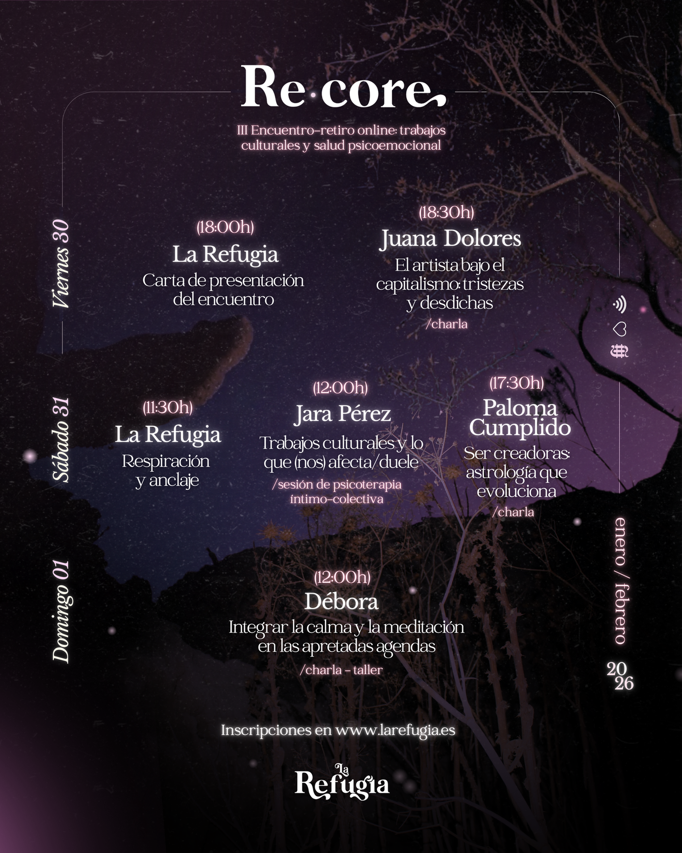 Ya tenemos inscripciónes abiertas para nuestro próximo encuentro-retiro online Re·core, una burbuja dedicada a la ralentización, la introspección, el análisis, la calma, la no-utilitariedad y los cuidados.
